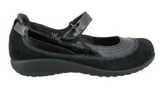 A sporty slip on mary jane style with a leather upper