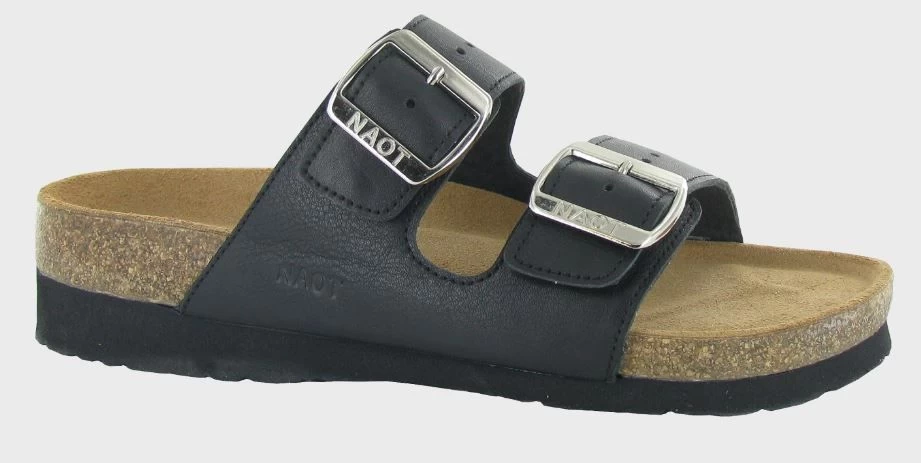 Naot Soft Black Leather Santa Barbara Womens Slide On Sandals