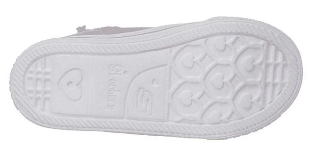 Inspire more affection in pretty style with the SKECHERS Twinkle Toes: Shuffle Lite – Quilted Beauties shoe. Soft satiny metallic finish fabric and glitter finish fabric upper in a two strap front casual light-up high top sneaker with stitching and overlay accents. Quilted heart designs.
